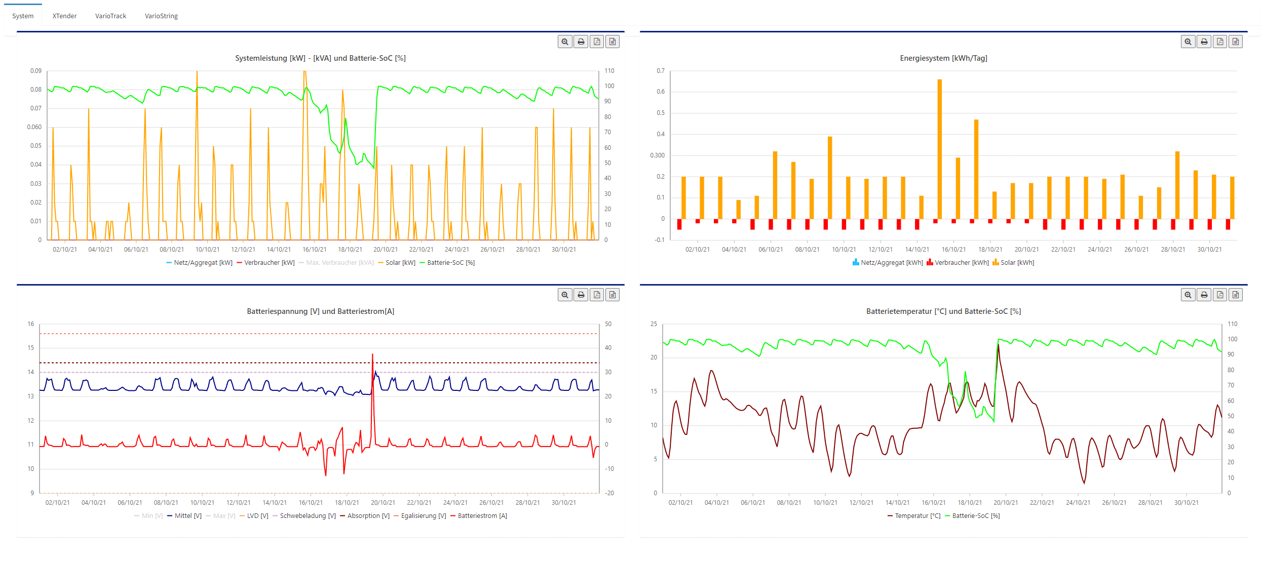 Die Studer Geräte sind mittels StuderBus miteinander verbunden. Mit einem Studer-CAN Adapter ist die Super-B im System ansprechbar. Als Display kommt das RCC-03 zum Einsatz und für die Fernüberwachung ein Studer-RS232 mit moxa Ethernetadapter.